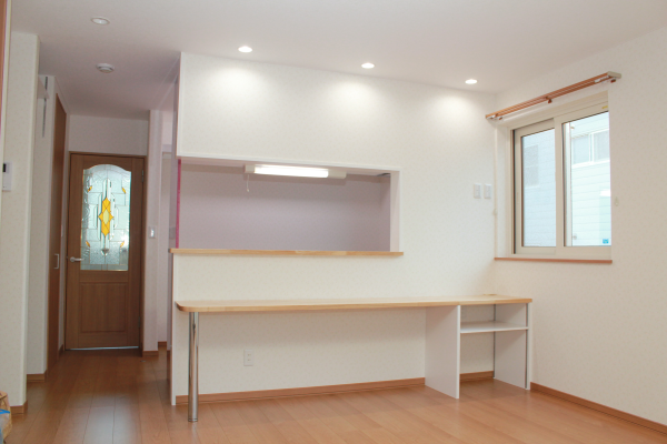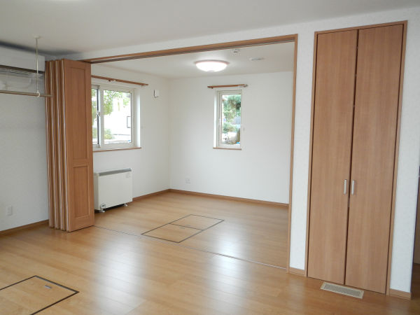 ▲同居型二世帯住宅の為、個室を一つ設けました。扉は可動式にして将来1つの