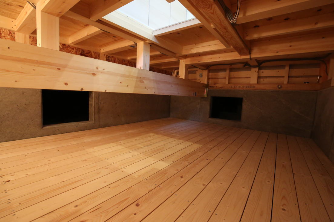 ![]() 床下収納髙さ80㎝仕様 床下に物入れがある!ちょっとわくわくする収納庫がついた家 収納に困らない!驚異の収納力で部屋に物を置かない生活へ 床下の高さの設定が3段階対応 空間高80㎝(標準高さ) 30㎝アップ仕様空間高110㎝ ・60㎝アップ仕様空間高140㎝ ![]() 床下収納といえば、床板と基礎の間を利用するのが一般的ですが、床の断熱が切れたり、収納量が少ないと いう問題がありました。基礎外断熱工法で施工する事で基礎内部はいつもカラッとしていて暖かく、カビ等 の嫌なニオイもなく快適な空間になりました。敷き炭との相乗効果もあってより快適な床下空間となってます 長年さとうホームが研究を重ねた オリジナルの床下大収納庫です! (初期設定は床下空間高80㎝) 収納量も畳10帖分~とたっぷり入りますので、季節ごとにしか使わないスキー用品やキャンプ用品・使わ ないだろうけどなかなか捨てられない物などを収納するのにとても便利です。居室の整理整頓にも一役! (床下のどの部分にも作る事ができるのでスノコを追加することによってより 多くの収納が可能です!最大、1階の床面積全てが床下収納に変化することができます 注:昔のムロとはちょっと違い暖かいです) ◇ 床下収納庫の入り口は大開口でタイプが2種類 ー フレームタイプとフレームレス